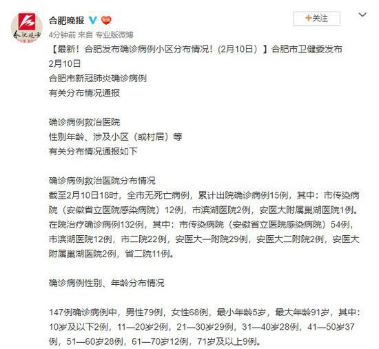原标题:最新!合肥发布确诊病例小区分布情况!(2月10日)