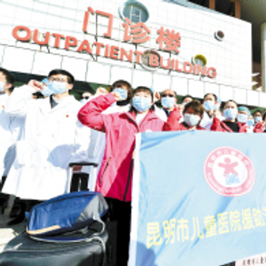 “昆明加油,武汉加油,中国加油!”昆明市儿童医院援助湖北医疗队启程仪式上,12名队员喊出口号。担任医疗队医师组组长的高瑾说:“我们将在湖北疫情一线,发挥自己的专业医疗特长,全力抗击疫情。”1月29日,昆明市儿童医院经过认真筛选,从几百名自愿报名医护人员中精挑细选出17名医护人员,组成援助湖北医疗队,并对17名队员进行疫情防控方面的专业培训。最终,确定了12名医护人员援鄂名单,其中有4名呼吸科、感染科主任或副主任医师,还有8名护士。