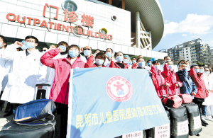 昆明市儿童医院赴湖北支援医疗队出征仪式在门诊楼前举行。记者王俊星摄