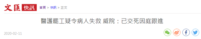 港媒曝香港部分医护罢工疑造成病人死亡 医院回应