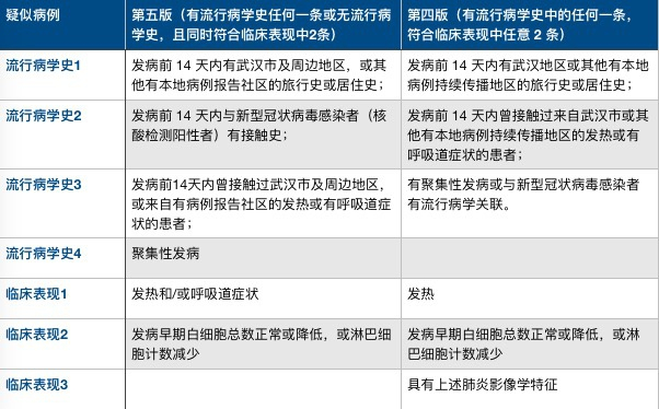 疑似病例标准的放宽,一是从原来的符合发热症状,调整为符合“发热和/或呼吸道症状”。二是除了符合“发热和/或呼吸道症状”以外,临床表现为“发病早期白细胞总数正常或降低,或淋巴细胞计数减少”,便可考虑为疑似病例。
