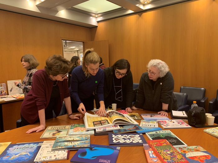 评委们正在阅读参评的图书。