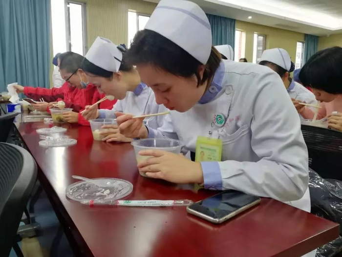 福建医科大学附属协和医院外科手术室主管护师林凯和女儿一起吃太平面。(福建医科大学附属协和医院 供图)