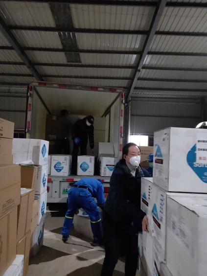 从山东烟台赶来支援武汉疫区的李言国,一直就在这座仓库工作。