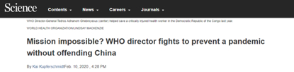 在这场突如其来的“战争”中,中国反应迅速,做出了巨大的贡献,世界卫生组织也多次高度赞扬中国在抗击病毒疫情方面所做的努力。让人愤怒的是,对于世卫组织力挺中国的行为,有些人却不怀好意的指责世卫组织偏袒大陆。美国《科学》杂志发表文章称“世卫组织总干事谭德赛想在不冒犯中国的情况下防止大流行是不可能完成的任务”,并援引批评人士的说法称,谭德赛的处理方式“将世卫组织的道德权置于危险境地”。