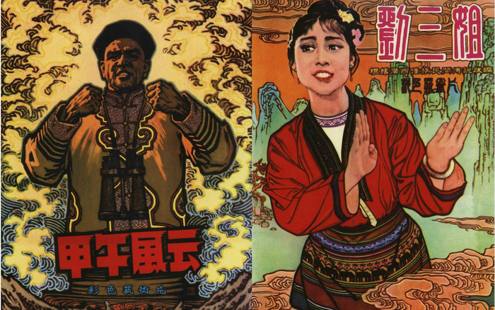 《甲午风云》和《刘三姐》的手绘海报。