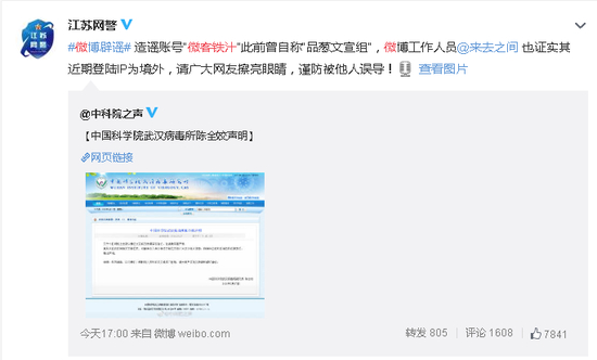 造谣"武汉病毒所研究员实名举报"账号 来自境外!