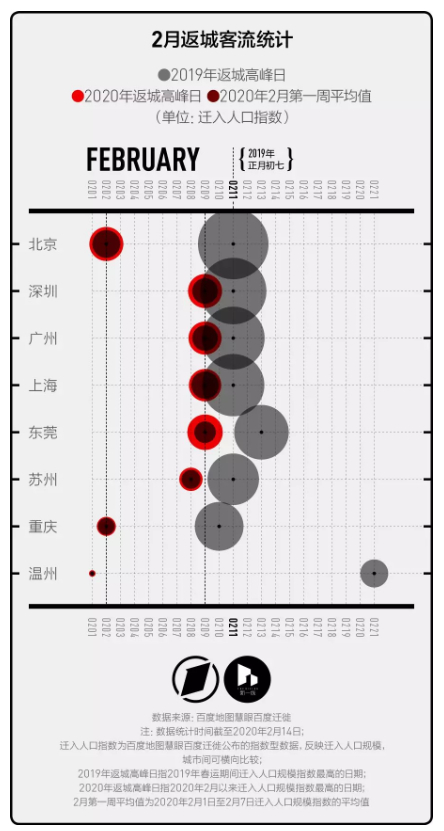可以理解为,大量中远距离迁徙的人群,事实上已于国务院规定的春节假期结束之时进入大城市。