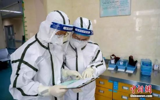 医院隔离病房内,医务人员核对患者治疗单。中新社记者 张畅 摄