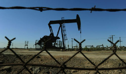 资料图:美国洛杉矶一处油田里正在作业的油泵。