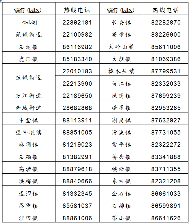 6. 东莞市各镇街、松山湖疫情防控热线电话