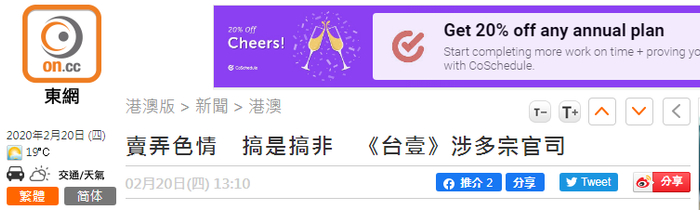 台湾《壹周刊》如今结束运营,“东网”回顾称,壹传媒近年至少停了9本杂志及报纸,显示该集团早已岌岌可危,走上末路。报道提到,2011年9月,壹传媒尝试“跟风”创办免费报纸香港《爽报》,但营运仅约2年,2013年10月便“捱唔住”收摊。期间《爽报》还多次被指卖弄色情、荼毒青年,引发多个团体到壹传媒大楼外示威抗议。