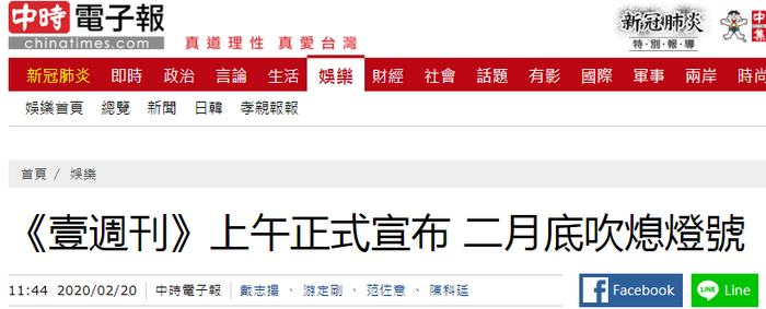 [环球网报道]据台湾“中时电子报”等媒体20日报道,继2018年纸质版停刊后,由乱港分子黎智英创办的壹传媒旗下台湾《壹周刊》今天(20日)发声明称,将于2月29日结束营运。