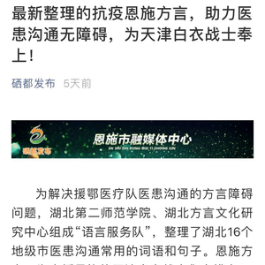 湖北高校为援鄂医护编方言对照表:太劳烦您儿哒是感谢