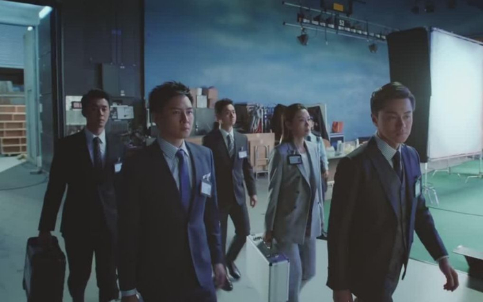 出场西装革履的众人。