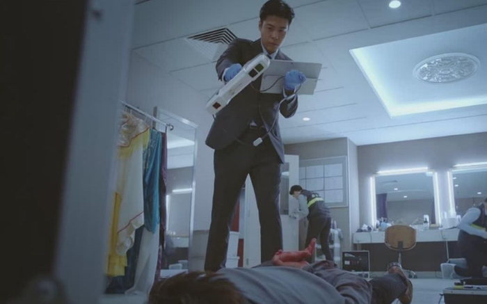 在第四季第一集的出场,人人都是西装革履,这一点比我们的服饰帅气得多。接着看细节,他们全都戴着橡胶手套、穿着防水鞋套,在内地,虽然很多地方都希望做到这一点,但实际上不少现场勘查人员还是习惯戴白布棉手套,还有普通的鞋套。不过,这部剧和以往的内地刑侦剧一样,不论是现场勘查人员还是法医都不戴口罩,大约导演觉得花了钱,请了明星,不露脸不划算吧。