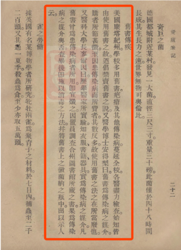 1922年《学生杂志》载与之类似的美国学者因“旧书传疫”而死的异闻,如下: