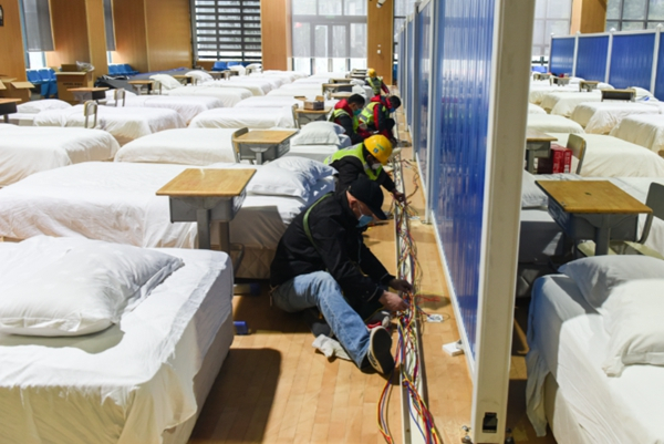 国网武汉供电公司相关部门单位紧急联动,全面投入应急会战。该公司成立由基建、运维、客服、配电、运检等部门的负责人及专家组成的指挥部,负责指挥这次为3500个床位提供照明、取暖、医疗、充电等全方位供电保障的紧急建设任务。