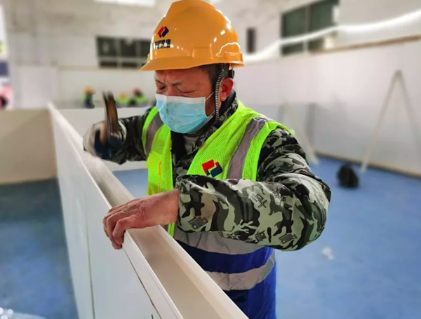 中国建材集团所属北新建材在援建武汉火神山医院、雷神山医院等10家医院后,再次援助了第11家医院——武汉光谷科技会展中心方舱医院。三天时间内,北新建材共组织5辆大货车奔赴施工现场,共计运送石膏板9504平方米、轻钢龙骨25800米、自攻钉174000颗及配套材料若干。方舱医院的建设还部分采用了北新建材全球首创的鲁班万能板。