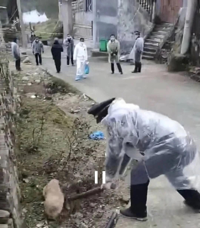 因疫情被摔死的狗。