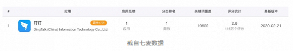 现在钉钉的评分从日前最低分1.3分回升到2.6分,不过帮着钉钉平反的,多数是年龄稍大的中学生和理解社会疾苦的成年用户。