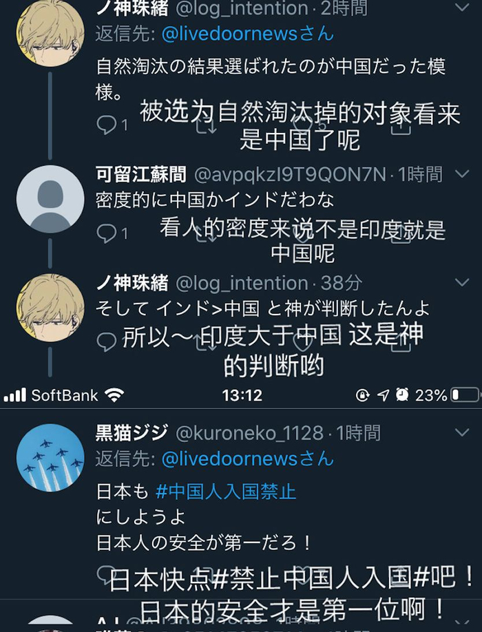 日本的情况则稍微好一些,对中国的抵触情绪大多体现在少部分右派和社交网络上: