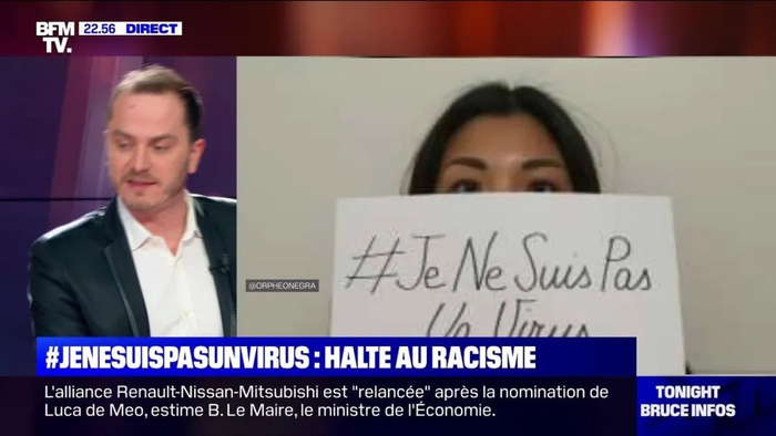 在法国,亚裔人士不满人们因新冠疫情而对他们的歧视,在社交媒体上发起 #JeNeSuisPasUnVirus(我不是病毒)话题。