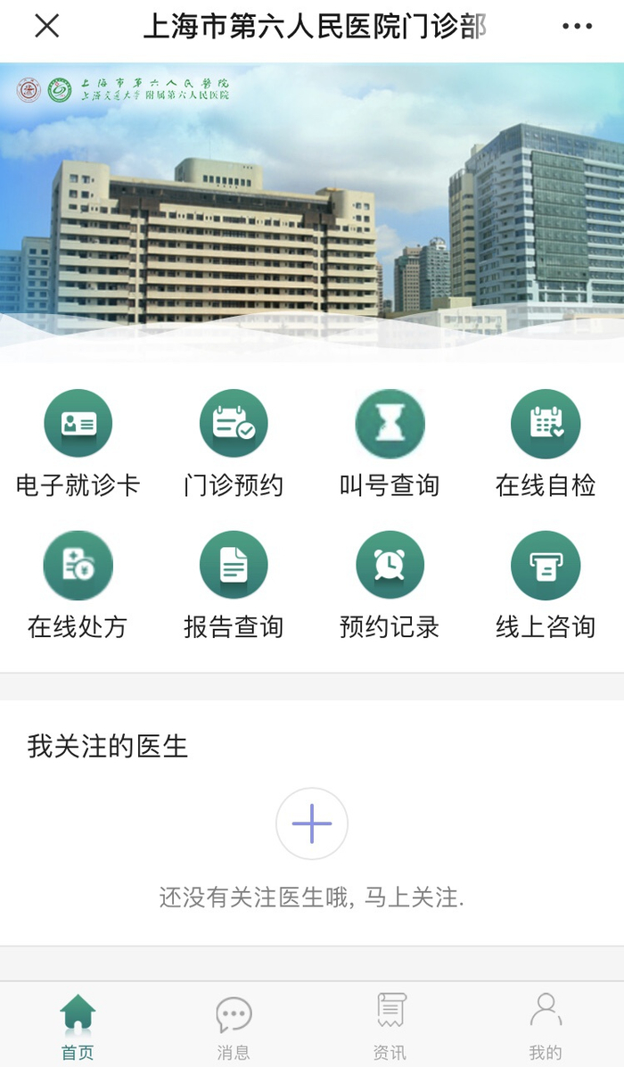 上海市第六人民医院微信公众号在线服务平台 网络截图