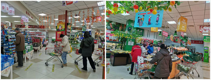 对此,新京报记者2月27日探访了北京多家超市,多数超市在硬件方面基本达标:门帘摘掉、进店测温、购物提示以及收银区域的“一米线”设置都很到位,不过个别超市对于顾客挑选物品时扎堆、排队结账时间距过近等情况缺少劝阻和疏导。