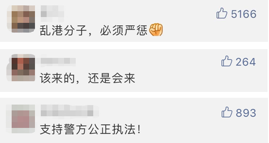 而在社交媒体上,要求“严惩乱港分子”“支持香港警方公正执法”的声音不绝于耳。