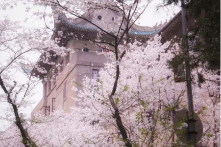 武汉大学的早樱已经开了。