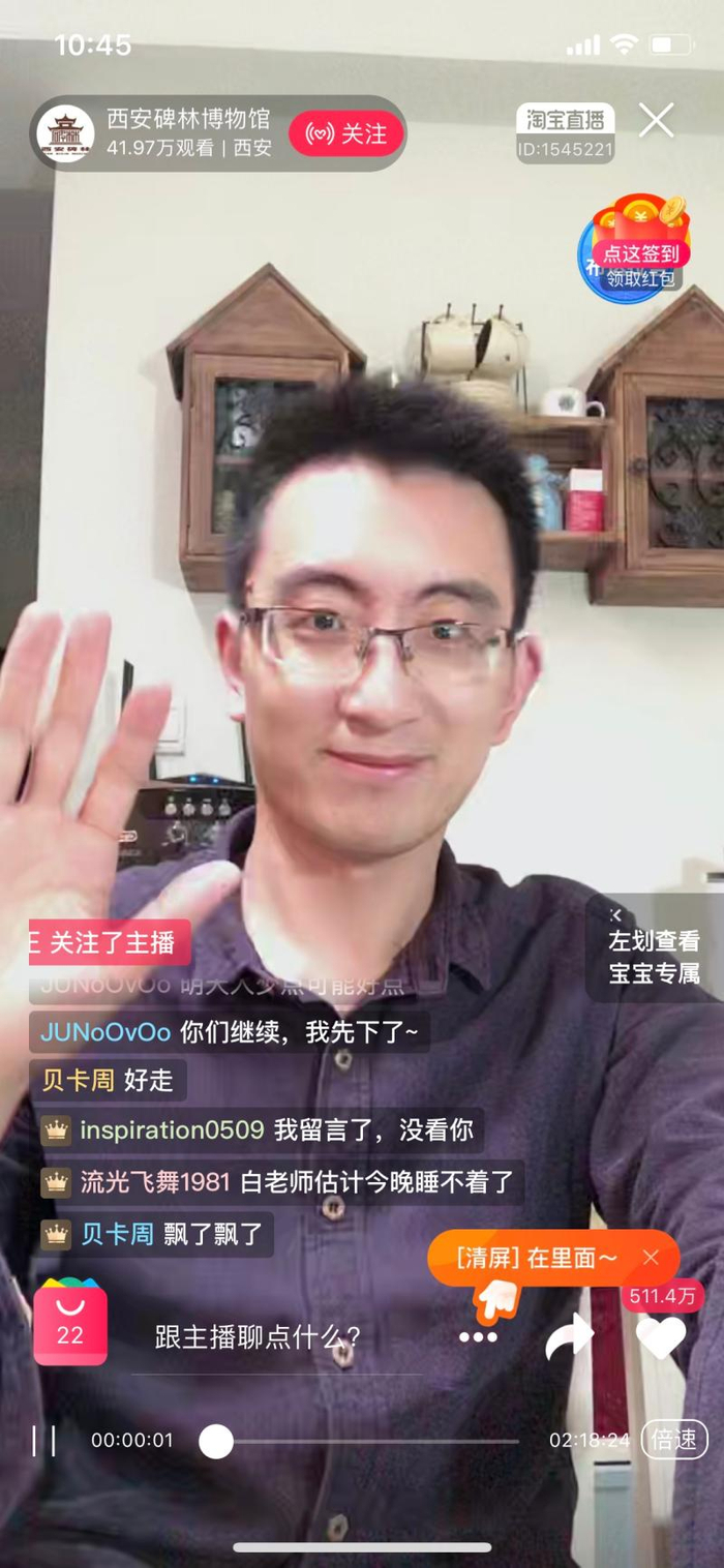 不过比布达拉宫直播更受欢迎的,竟是相对小众的西安碑林博物馆的直播。讲解员白雪松昨晚“八点档”照例侃侃而谈,51分钟时已有超过192万人在线观看,2个多小时直播结束点赞数达到511.4万。有人称他是“西安窦文涛”“让我放弃李佳琦的男人”。