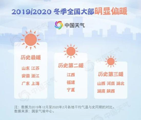 原标题:暖冬!全国冬季气温历史同期第五高 江浙沪等6省市史上最暖