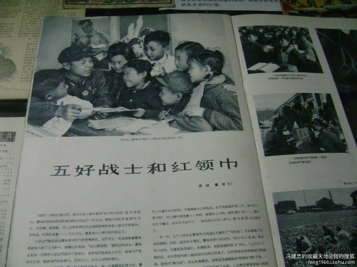这份1960年的《民兵之友》,与冯建忠的年岁一般大。彩色的封面上,雷锋仰着45度望天,露出大半个娃娃脸。“活着的时候,他就是先进人物。”冯建忠对照目录,翻到里头占了四版的文章《做毛主席的好战士》,署名是雷锋自己。文末还连着“雷锋同志日记摘抄”。当时,雷锋光荣地参加了解放军,加入了共产党,实现了自己崇高理想,与他两次捐钱的私人纪录与感悟都刊载在上面。