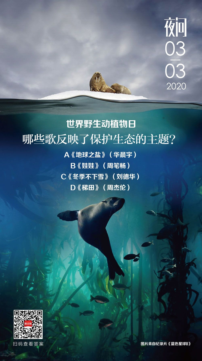 “世界野生动植物日”是为提高人们对世界野生动植物的认识,由联合国大会于2013年12月20日决定设立的日子。今年的3月3日是联合国第七个“世界野生动植物日”,主题是“维护地球上所有的生命”。很多音乐人都会通过作品表达自己对于生态保护的态度。
