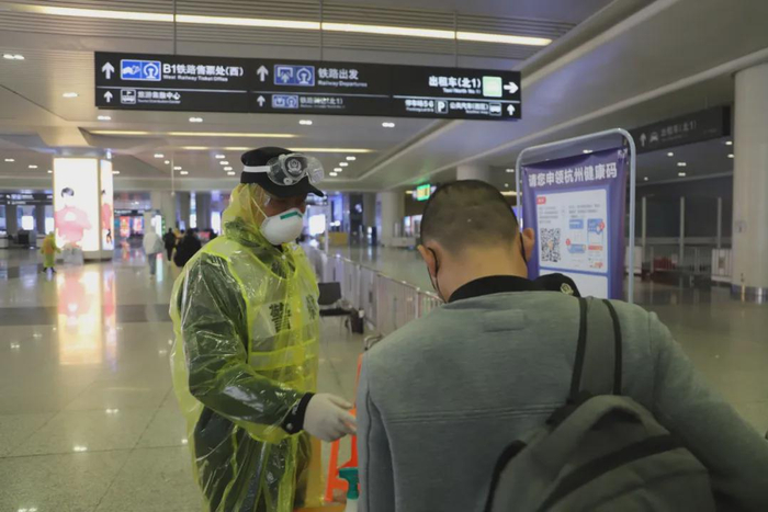 在杭州火车东站枢纽防疫查控工作第一线