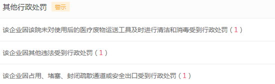 时代周报新媒体记者还发现,安康市中心医院在2016年因占用、堵塞、封闭疏散通道或安全出口受到行政处罚;在2018年未对使用后的医疗废物运送工具及时进行清洁和消毒受到行政处罚;还在2018年因偷税漏税受到行政处罚。