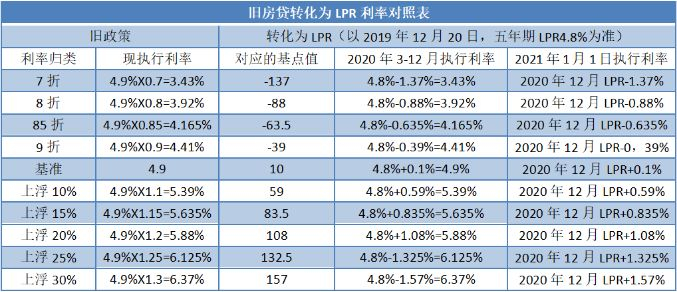 此时,再结合2021年后的LPR,便可得出新的利率。具体的公式为2020年12月公布的“LPR”值加上对应的基点。