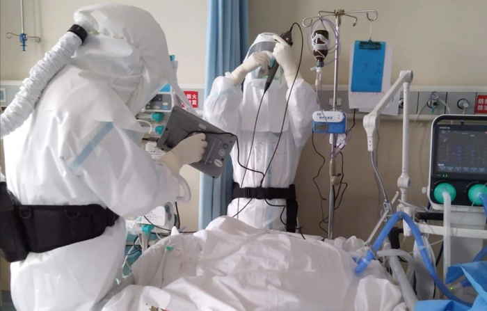 武汉协和医院西院内镜清肺小组的医务人员正在为病人治疗。(图片由受访者提供)