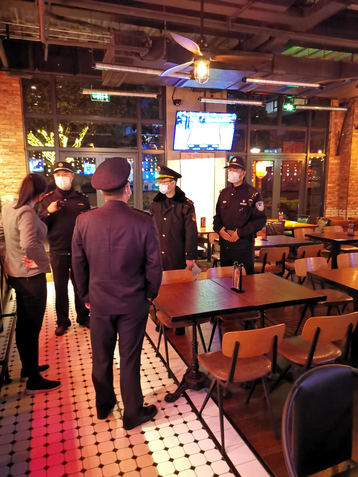 我所在的城管执法中队与辖区内市场监管所、派出所迅速成立联合执法队伍,在保障商户正常开业的同时,对虹泉路、紫藤路、虹梅路老外街等重点夜市聚集区域展开防疫排查整治工作。考虑到夜市的营业时间以及人流峰值,从2月29日起,我们将巡查时段调整为每日21时到次日凌晨2时。此外,对于之前存在外籍消费者聚餐堂吃现象相对较多的商铺,我们还进行重复检查和飞行检查,确保夜间餐饮商铺经营秩序,杜绝人员聚集现象。