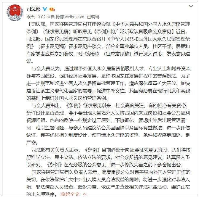 司法部和移民管理局今天中午发布消息,对公众围绕“外国人永居条例”征求意见稿产生的巨大争议做出官方回应。老胡来解读一下这个官方消息稿。