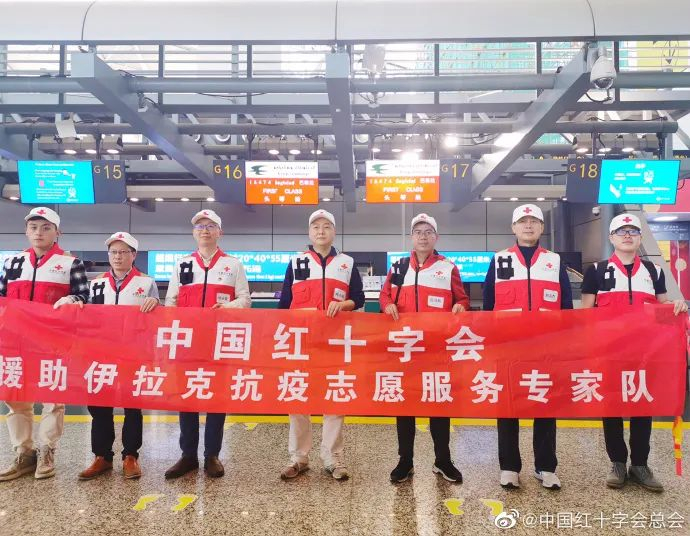 据@中国红十字会总会 官方微博消息,2020年3月7日下午,应伊拉克红新月会请求,中国红十字会总会派遣志愿专家团队一行7人从广州飞赴巴格达,携带核酸检测试剂盒等医疗用品和设备、中成药等人道救援物资,支援伊拉克新冠肺炎疫情防控工作。