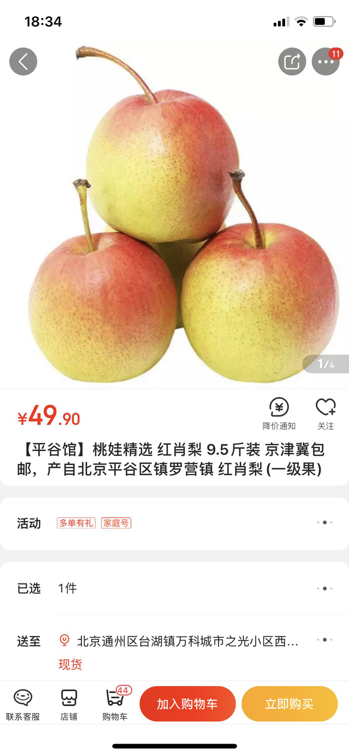 百万斤平谷红肖梨待销,京东上线一天卖4000斤