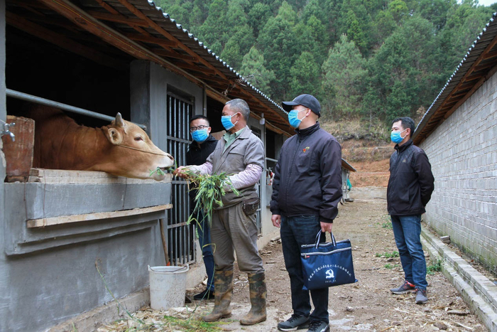 图为3月5日,冉茂思带着2名年轻党员到养殖场当“学徒”。(云南省砚山县纪委监委王艳 摄)