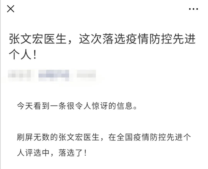 原标题:张文宏未获先进个人?别情绪化渲染想象中的“落选”