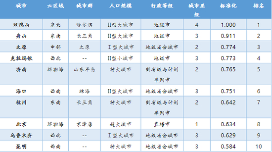 从前十强城市的区域分布看,四个直辖区全部位居其中且排名较为靠前,北京位居首位,其余均为省会城市。除十强外的城市排名中,省会城市也同样领先。