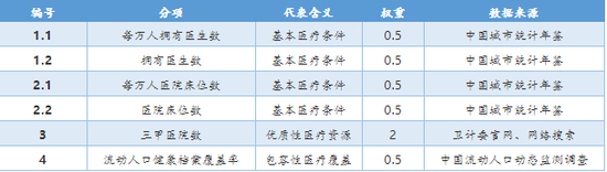 依据是构建了更具综合性的医疗硬件环境竞争力指数,包含拥有医生数和每万人拥有医生数(基本医疗条件)、医院床位数和每万人医院床位数(基本医疗条件)、三甲医院数(优质性医疗资源)和流动人口健康档案覆盖率(包容性医疗覆盖)6项分项指标。