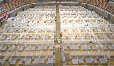 当天一大早,他来到洪山体育馆报到。这个他曾经打过羽毛球、游过泳的地方,突然间变得有些陌生,成了一个大工地。工人师傅忙着走电线、安装隔板、摆放病床,按照防控要求隔离污染区、半污染区和清洁区。没有人交谈,每个人都专注于手中的活计。
