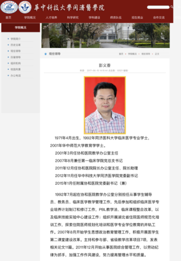 资料显示,彭义香院长具有丰富的临床教学管理经验。1992年7月起在协和医院教学办公室分别担任从事学生辅导员、教务员、临床医学教学管理工作,先后参加和组织临床医学专业培养计划制订和修订工作,PBL教学法、临床课程整合改革,以及临床技能实验中心建设工作;组织开展湖北省住院医师规范化培训工作,探索住院医师规划化培训和医学专业学位教育的并轨工作。