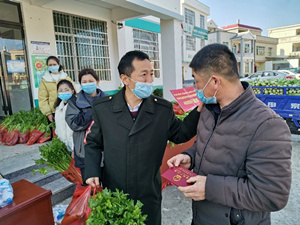 在吉志雄值完夜班的第二天,他一刻没有休息,针对全村因封闭式管理出村购买菜品不便的情况,当天就现场组织了事先联系好的新鲜蔬菜进村慰问活动,上午开会布置和充分准备,4000斤新鲜蔬菜,整整发放一下午,做到了在村生活的300户村民,户户有新鲜蔬菜吃。